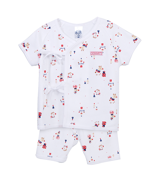 ENFANT Kids Short-sleeved tie-up shirt and 3/4 pants set little deer pattern – White (for children aged 0-6 months). 100% оригинал