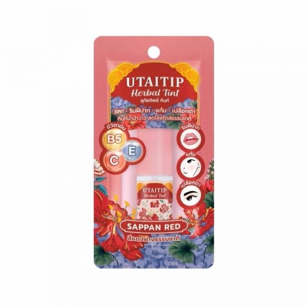 Лак-тинт для губ «Утайтип» травяной оттенок Сападен (красный) 3,5 г – Utaitip Herbal Tint Sappan Red 3.5 G. ลิปทินท์น้ำฉ่ำวาว สดใส
