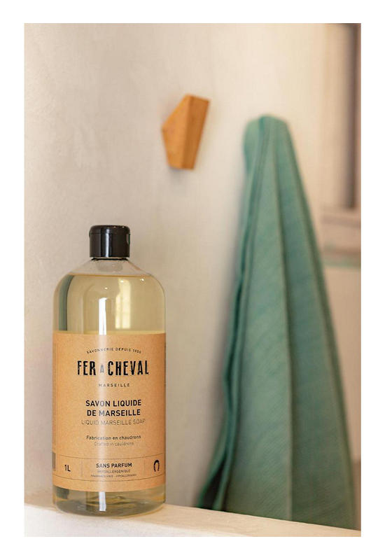 FER A CHEVAL Marseille liquid soap, vegetable oil formula, no perfume, liquid soap for gentle cleansing of the skin. Combined with the value of pure palm oil to preserve moisture and care for the skin to be naturally healthy.