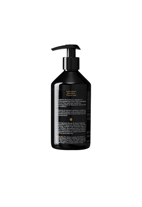 An anti-bacterial, aromatic Body & Hand Cleanser from PANPURI developed for frequent cleansing with a mild, non-drying, sulfate-free formulation that gently purifies without disrupting skin’s natural moisture balance. Tropical, vibrant, balancing. This signature citrus blend, redolent of Indochina and its sundry traditions, reveals the iconic Thai Lemongrass central to Thai cuisine and wellness traditions, enhanced by revitalizing peels of Mandarin to promote an equilibrium of the senses, resulting in an exhilaratingly fresh experience.