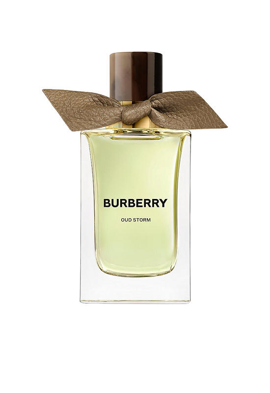 This Burberry scent balances powerful natural elements. Oud Storm Eau de Parfum is presented in an elegant glass perfume bottle. The lid is made from the same material as the buttons on the Burberry trench coat. The leather knot is dressed in an elegant brown colour, inspired by the fashion house codes. The juice appears in pale and delicate green inspired by the landscapes of nature captured in the bottle. The outerpackaging sleeve is dressed up with gold leaves expressing the natural delicate strength of Extreme Botanicals.
