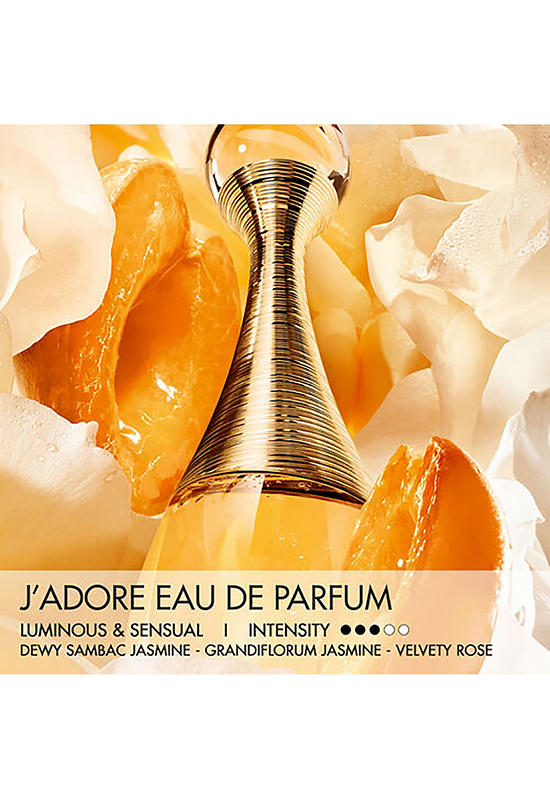 J’adore, the legendary women’s fragrance from the House of Dior, blooms into a floral arrangement of notes of ylang-ylang, Damascus rose, jasmine grandiflorum and jasmine sambac.