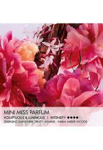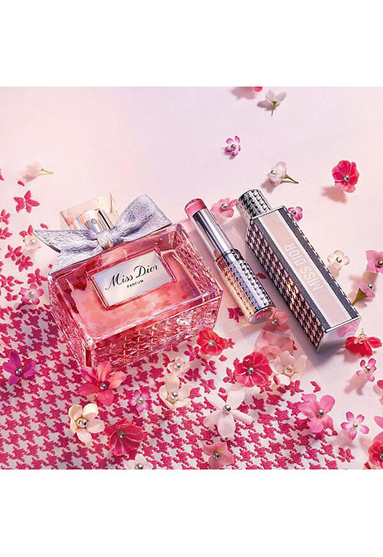 • Miss Dior Parfum is a floral and fruity bouquet, dominated by a generous note of star jasmine that contrasts with the voluptuousness of ambery wood accords. This sensual woody composition warmly envelops the notes of sweet fruit and flowers.