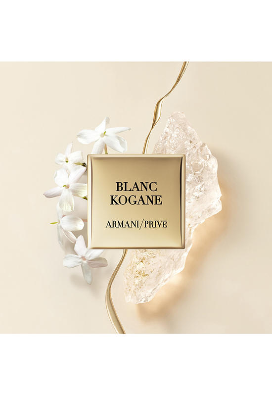 • Discover Armani/Privé’s new Les Terres Précieuses Haute Couture fragrance, Blanc Kogane, a luminous, addictive and deconstructed musk scent, shaped around precious white jasmine notes for an enveloping fragrance.