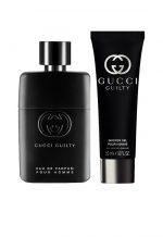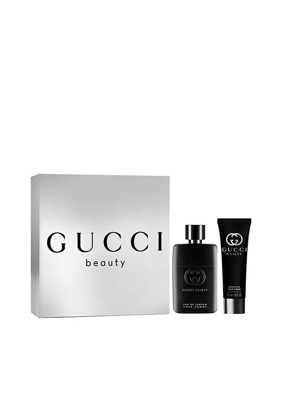 Share Love, Gucci Beauty Gift. Celebrate the festive season with this Gucci Guilty gift set for men. Gucci Guilty Pour Homme Eau de Parfum for Men presents an aromatic fougère that inspires a fresh take on blending sensuality with living authentically. This woody aromatic scent opens with heady Rose essence and an unexpected touch of Chili Pepper at the top. A heart of Lavender and Orange Blossom is rounded by the earthy aromas of sensual Cedarwood and Patchouli base notes. Encapsulated in a fully metallised bottle, the enticing scent is dressed in dark anthracite with a matching cap. The design is finished with the house’s emblematic interlocking G logo.