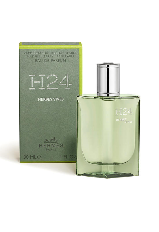 With this third installment in the H24 line, Hermès perfumer Christine Nagel continues her botanical exercise in the footsteps of a modern man on the move. H24 Herbes Vives eau de parfum recreates the sensation of rediscovering urban nature after the rain.