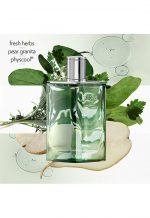 - With its pure lines, the bottle designed by Philippe Mouquet is adorned with green lacquer to echo the fragrance’s olfactory notes. The box is in a deeper shade of gray-green, as if traces of plant life had spread through the asphalt of the city. A lime-green line delimits and opens up the space. The 30 ml size is ideal for the man in motion.