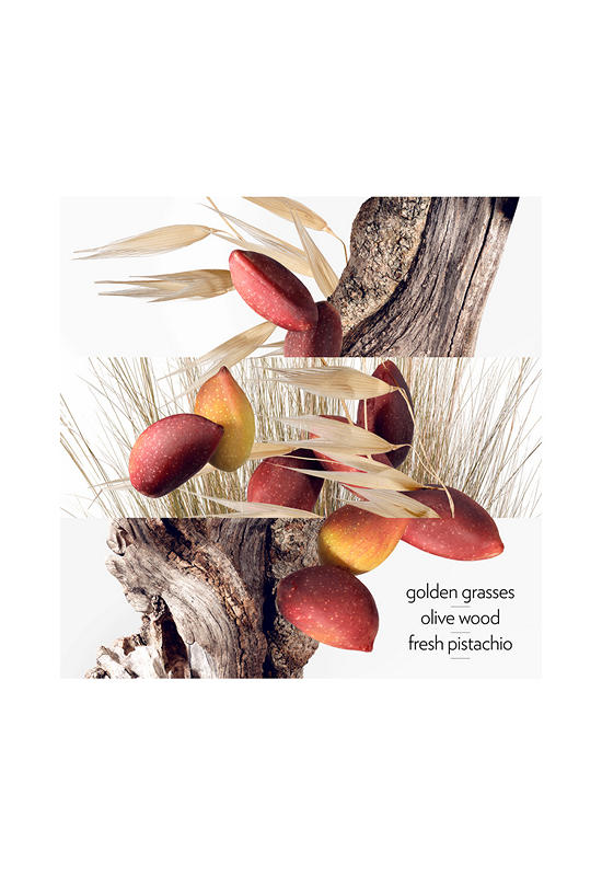 A citrus and woody fragrance, Un Jardin à Cythère eau de toilette combines enveloping notes of grasses with the strength of olive wood and the tenderness of fresh pistachio.