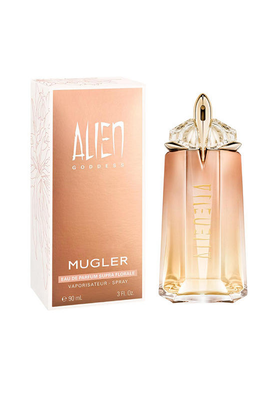Women Fragrance Alien Goddes Supra Florale EDP 90 mL from the brand MUGLER, turns the signature solar jasmine of the original scent into a monumental, otherworldly supra flower. Shapeshifting, fascinating, the new bloom is the symbol of the augmented femininity embodied by Alien Goddess.