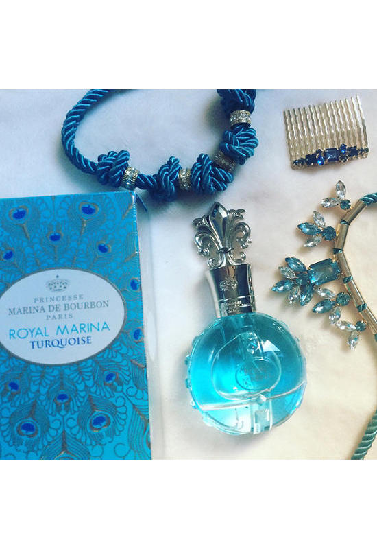 The latest Royal Marina Turquoise fragrance from the brand Princess Marina de Bourbon is turquoise blue.