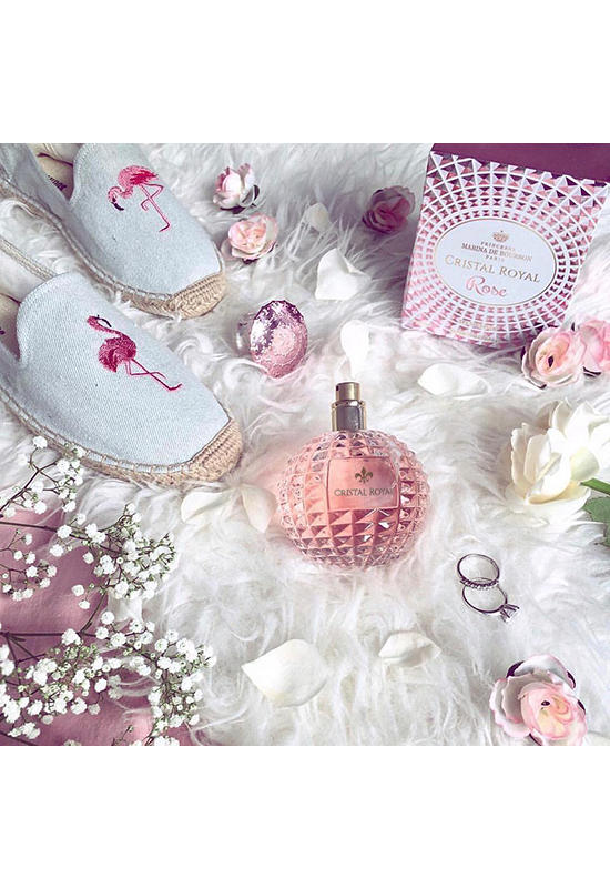 Cristal Royal Rose is a vibrant and flourishing fragrance, symbolizing joy and passion. A precious bouquet of thousand of flowers. Inspired by the traditional French craftsmanship of fine crystal, this new fragrance by Princesse Marina de Bourbon is a veil of femininity and beauty. A poetic and lively fragrance, celebrating the seductive side of the woman. Cristal Royal Rose is a floral-sparkling fragrance with absolute femininity that work in a beautiful harmony.