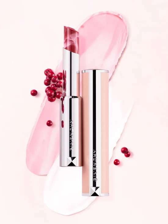 Infused in color and care from GIVENCHY Lasting hydration and fresh colors combine to reveal the natural beauty of your lips with a 95% natural origin formula. Nourish Your Radiant Beauty. Powered by rose oil, hyaluronic acid, vitamin C, pink pepper, and shea butter, the formula melts into the skin for a feeling of ultimate comfort. Boosting lips with 24-hour hydration, Rose Perfecto nourishes, smoothes & plumps for a healthy glow after the day.