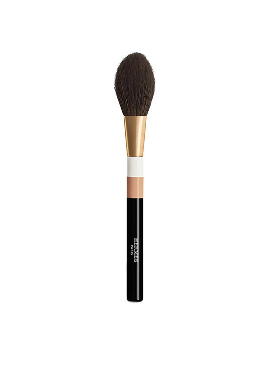 This precious object with a three-coloured handle in lacquered wood sits comfortably in the hand. The ultra-soft natural goat hair fibres are hand-assembled by a French brush-maker.