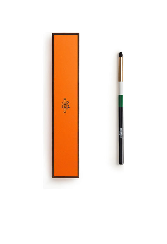 It is ideal for blending an eye pencil line, smudging the product outwards to elongate the shape of the eye. The brush can also be used to intensify a line of powder from the Ombres d’Hermès quartet of eyeshadows on the lower or upper lash line, creating a smoky effect.