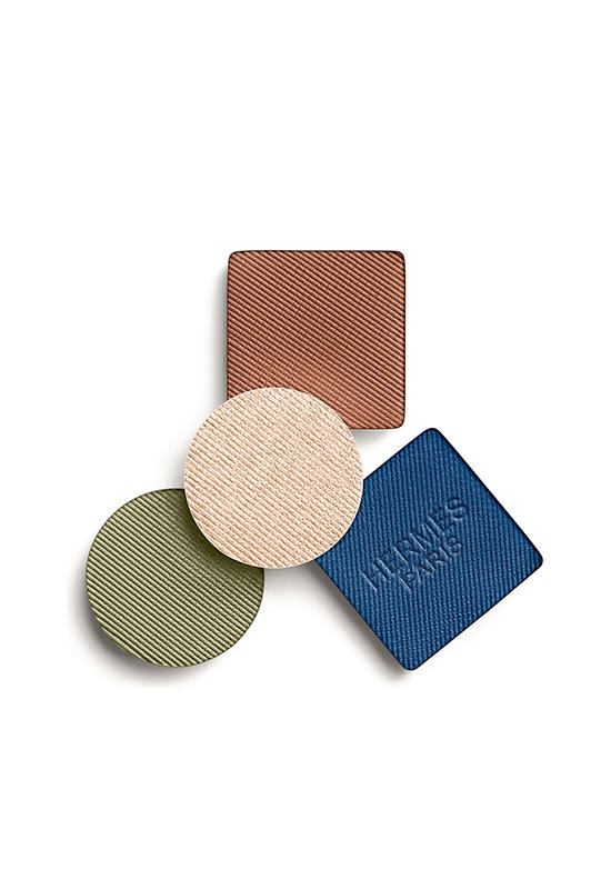 Designed by Gregoris Pyrpylis, creative director of Hermès Beauty, the colour palette quartet of eyeshadows offers multiple expressive possibilities for a natural, intense or sophisticated look.