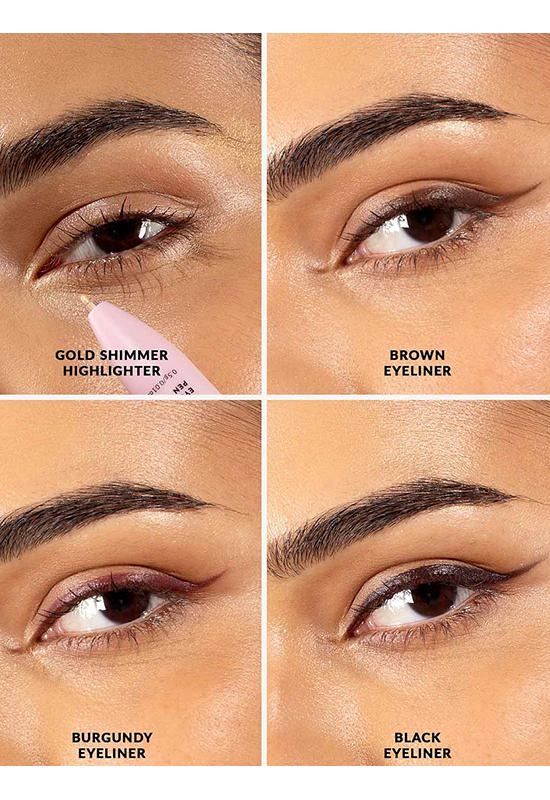 - Black, brown, burgundy and gold shimmer eyeliner pencil, in one fun-size pen