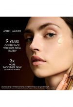The skin’s contours appear denser and plumper, and it is visibly smoothed with a refined texture. The appearance of wrinkles is diminished and the outline of the face seems enhanced. More uniform, the skin recovers its youthful radiance.