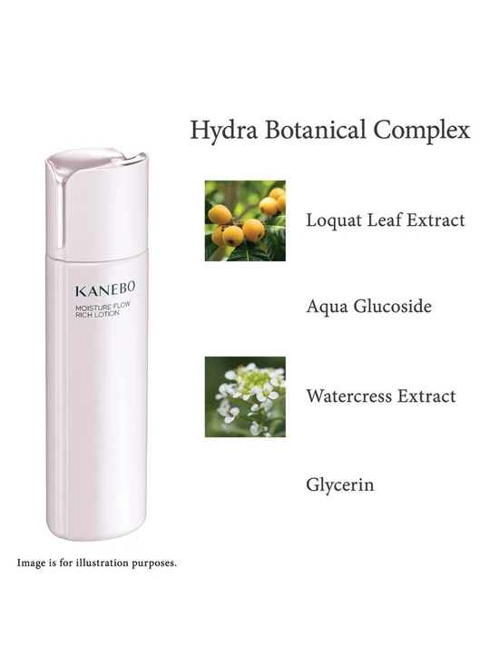 KANEBO Easily absorbs into the skin with a pleasant texture. The flowing textured lotion is absorbed comfortably into your skin, leaving it soft and brimming with moisture. MOISTURE FLOW RICH LOTION: A rich moisturizing texture. KANEBO MOISTURE FLOW LOTION MOISTURE FLOW LOTION: A pleasantly moisturizing texture.