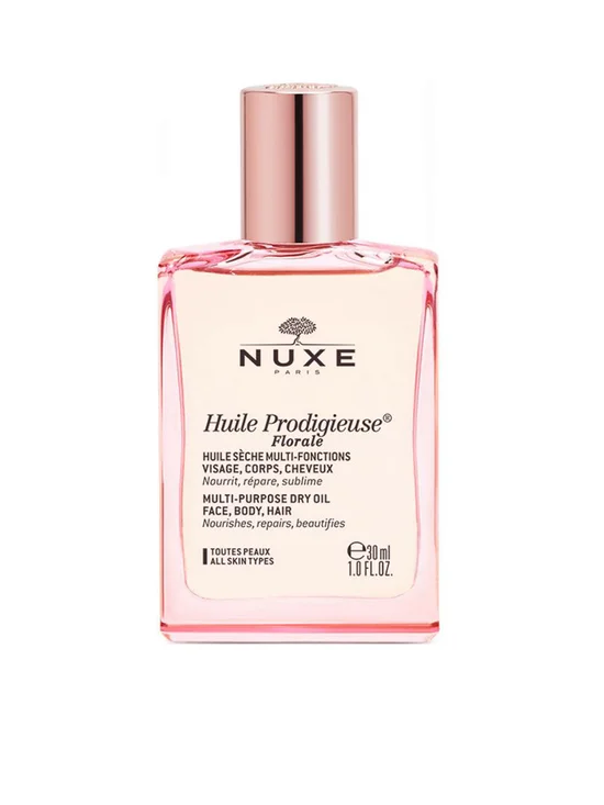 Huile Prodigieuse Florale Multi-Purpose Dry Oil from NUXE the legendary skincare treatment with seven precious botanical oils and 98% natural ingredients provides long-lasting hydration for the face and body. Its antioxidant action and anti-pollution shield effect and its power to reduce the appearance of stretch marks make it your everyday ally. With its inimitable dry oil texture and its addictive fragrance with sunny, sensual notes, Huile Prodigieuse serves up a moment of real pleasure.