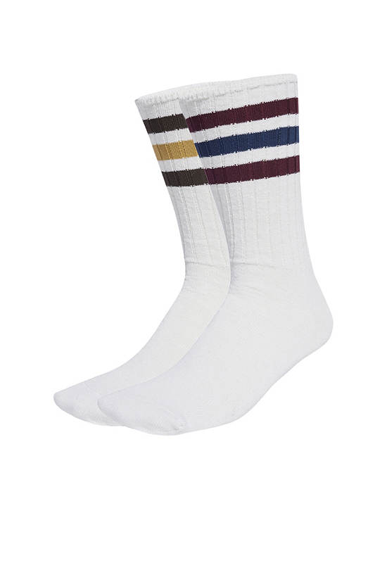 ADIDAS These adidas crew socks feature a soft cuff and a larger ribbed construction that gives them a thick and cosy feel. The sporty colour combinations make them an easy match for any outfit. Two pairs per pack means you have twice the options.