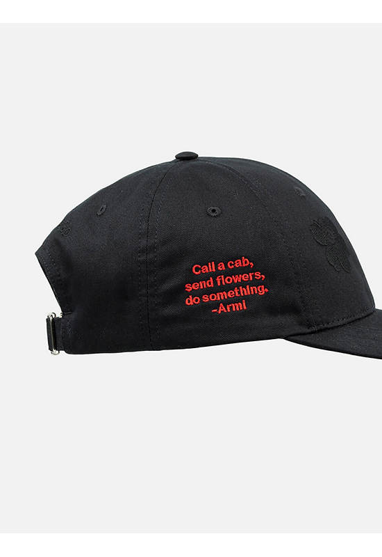 The Sementti baseball cap is made of cotton, and it features the embroidered Unikko flower in the front and a quote from Armi Ratia on the side. The cap can be adjusted in the back for a comfortable fit.