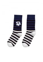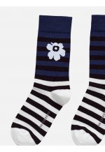 The Kasvaa socks are made of a cotton blend and they feature the Tasaraita pattern with one flower of the classic Unikko pattern.