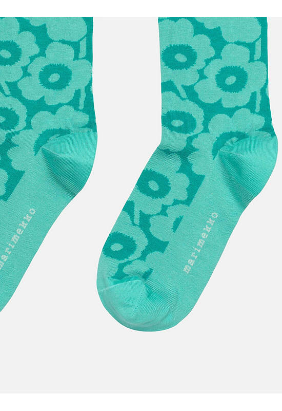 The Linjaus ankle socks are made of a cotton blend, and they feature the Unikko pattern.