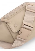 DAPPER Monochrome Water Repellent belt bag. Constructed with Matte light beige coating nylon twill fabric for the weather resistant This bag can be worn as a cross-body or waist bag. Perfect for casual or outdoor wear. Plenty of storage capacity inside for all your essentials. DAPPER logo rubberized print on-tone at front part Decorated with On-tone zipper, Snap button, Side-Release buckle.