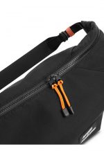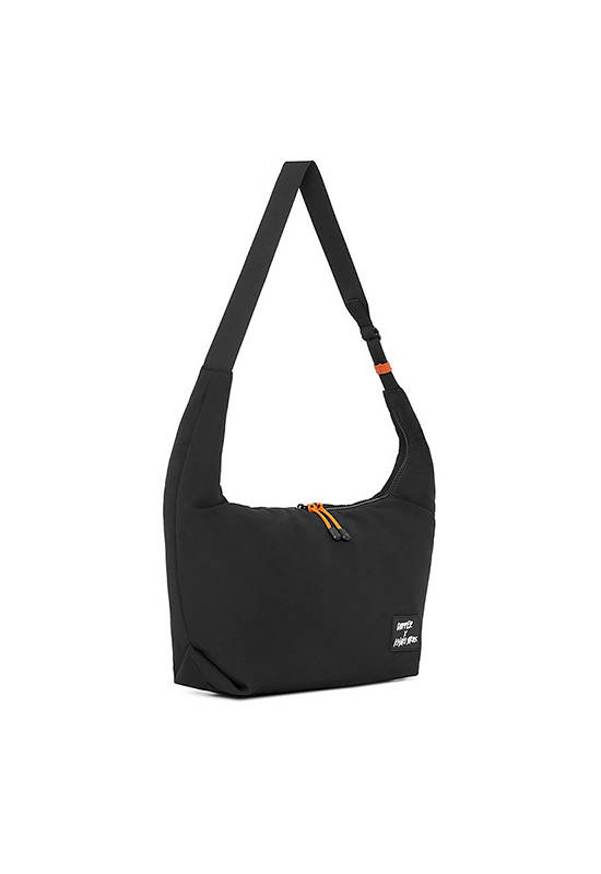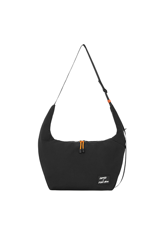 Dapper X Khaki Bros. Soft Ripstop Crossbody Bag made from Black soft ripstop fabric with a distinctive natural texture. Medium size bag suitable for carrying your everyday essentials. Wide Opening with double slide fasteners. Five pockets. including two slashed pockets on the outside perfect for water bottle and phone. Decorated with Orange accent Lining Fabric, zip puller and loop