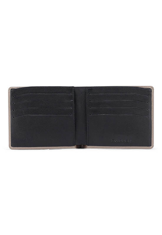 Verona Leather Billfold Wallet made from Semi-Veg Tan leather in grey Imported from Japan match with soft black nappa leather inside with Flat Eight card slots.Width x Length x Height