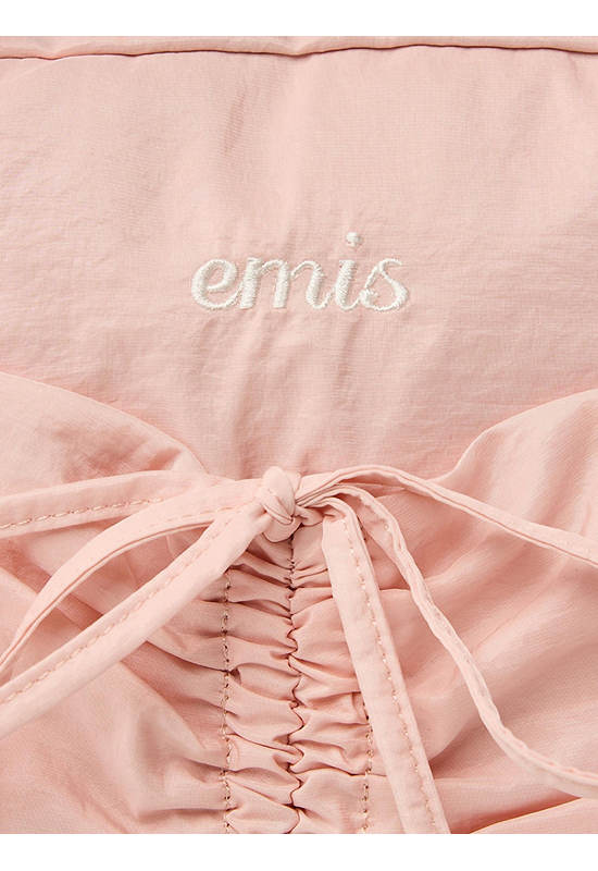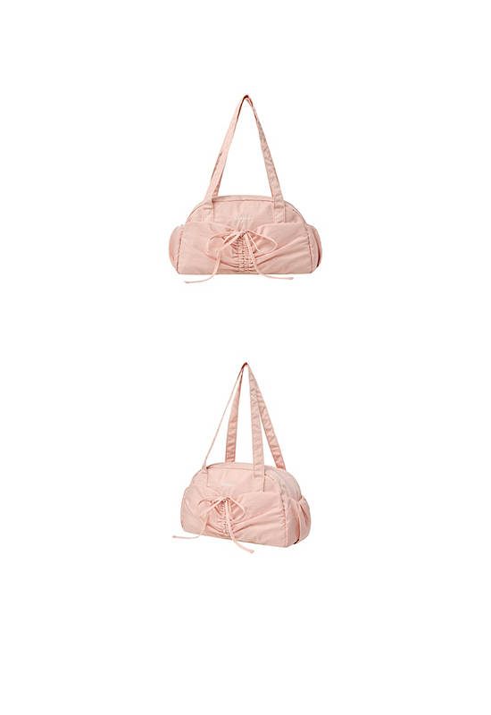 EMIS Nylon Shir Poket Duffle Bag. A duffle bag with shirring and ribbon details on the front pocket. Available in 3 colors.