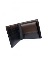 short wallet Made from smooth semi vegetable leather, inspired by the use of classic leather colors that are easy to use, with a plate embedded in the leather of the wallet on the outside. The plate is gold brass and printed with TAKEO KIKUCHI TOKYO. Inside, there is a play of leather color on the upper banknote slot. and the coin compartment cover