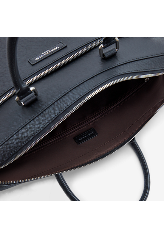 The briefcase is made from genuine cow leather with saffiano pattern and accessories. Premium grade shiny metal accessories.