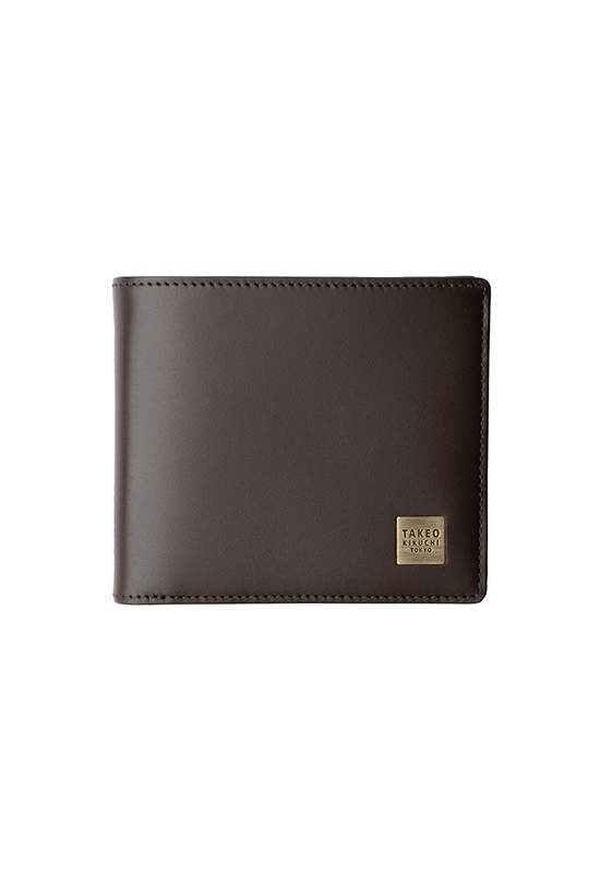 short wallet Made from smooth semi vegetable leather, inspired by the use of classic leather colors that are easy to use, with a plate embedded in the leather of the wallet on the outside. The plate is gold brass and printed with TAKEO KIKUCHI TOKYO. Inside, there is a play of leather color on the upper banknote slot. and the coin compartment cover
