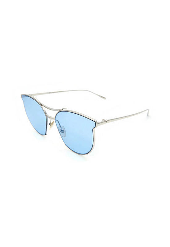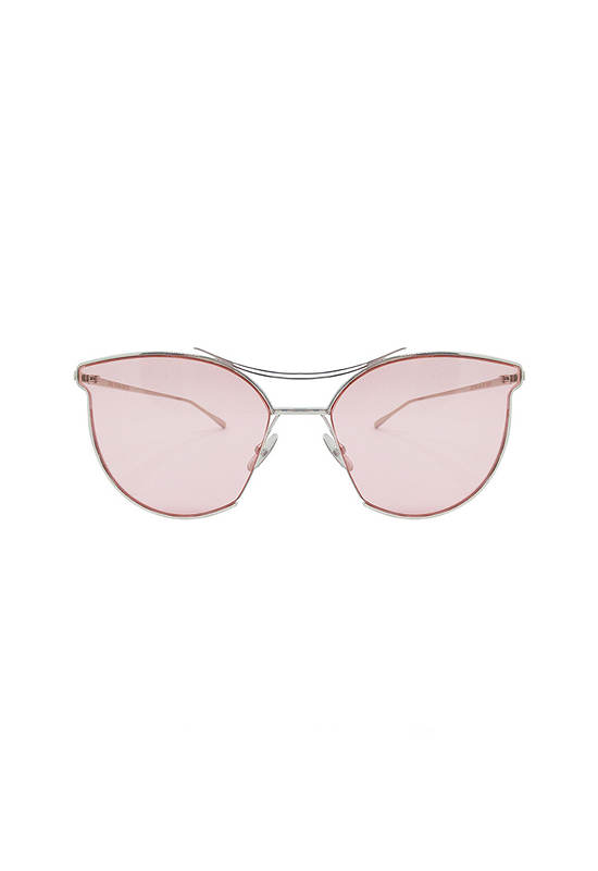 The Mystic -KB C13 sunglasses have a silver metal frame with a shiny surface The lenses are pink lens, making it possible to partially see the wearer’s eyes. The sunglasses legs are silver metal with a shiny surface. No sunglasses legs cap.