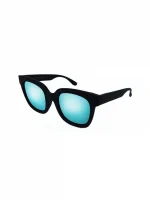 The Viva-KB C4 sunglasses have a black Acetate frame with a matte surface. The lenses are blue mirror lens, making it look opaque and helping to cover the eyes of the wearer very well. The sunglasses legs are black Acetate with a matte surface. No sunglasses legs cap.