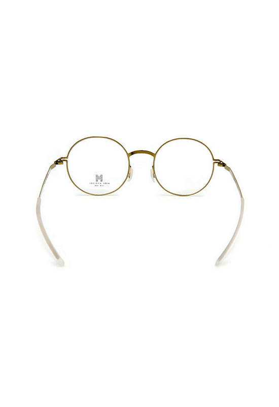 The Zula-AF C3 glasses frame is produced from Titanium. The front frame is pink with a matt surface, the middle frame is gold with a shiny surface and the inner frame is gold with a shiny surface. The glasses legs are produced from Titanium. The outer legs are pink with a matt surface and the inner legs are gold with a shiny surface. The end legs cap are covered in semi-transparent white Silicone with a matt with a shiny surface.