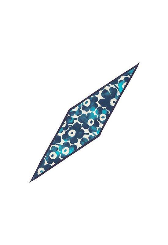 The Aiempi bandana is made of organic cotton. The diamond-shaped bandana features the Akvarelli Unikko patternm which looks like it was painted with watercolours. Bandana has the printed Marimekko logo in the middle.