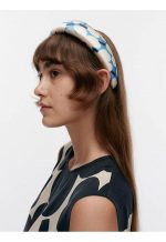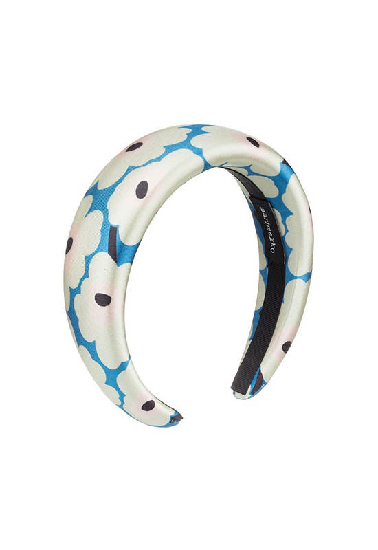 The padded Tenhota headband is made of recycled polyester, which has a slight shimmer, and it features the Unikko pattern.