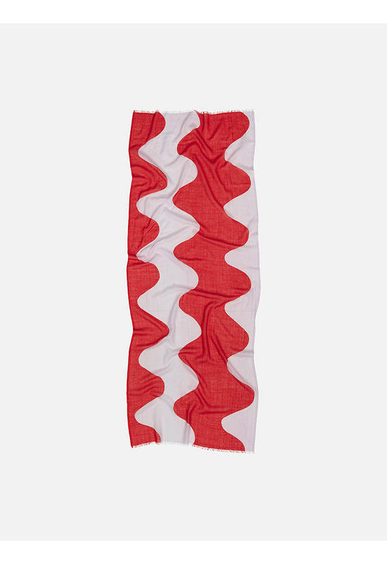 The sheer Fiore scarf is made of certified wool in the Lokki pattern. The ends of the scarf are unfinished.