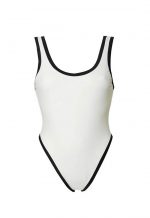 The Sporty Maillot Eco-Lycra Swimsuit by Oseree is a perfect choice for regular swimmers who would rather ditch their Arenas and go for something more stylish. The white bodice with the black trims has a retro vibe, think Baywatch meets St Tropez. The back has a low scoop back and a high leg cut.