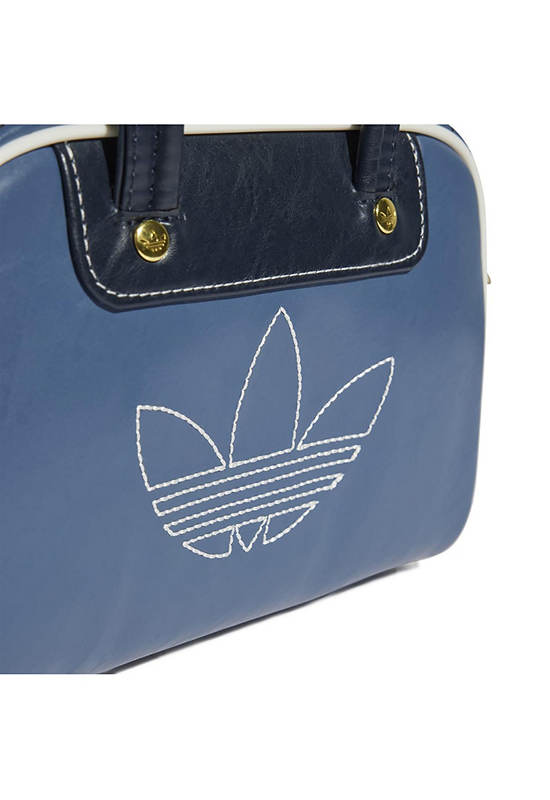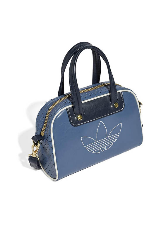 ADIDAS Inspired by iconic adidas trainers, this mini bowling bag is a heritage silhouette with modern style. Perforated and crinkled faux leather pairs up with contrast-colour piping for a look that’s all about casual cool. With a detachable shoulder strap, this bag is as versatile as it is fashionable. An embroidered Trefoil and metallic-gold hardware provide the finishing touches.