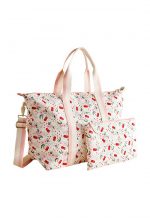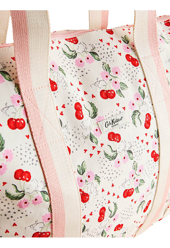We took the much-loved weekend bag and created a light and fresh Overnight Weekender brimming with Cherry Prints, accentuated by pretty dots, white buds and love hearts. Finely finished with Ice Cream Stripe web handles and a detachable cross body strap. This spacious carryall silhouette is ideal to take for your weekend getaway. Mix and match with the rest of the Cath collection for a bold and colourful collection.