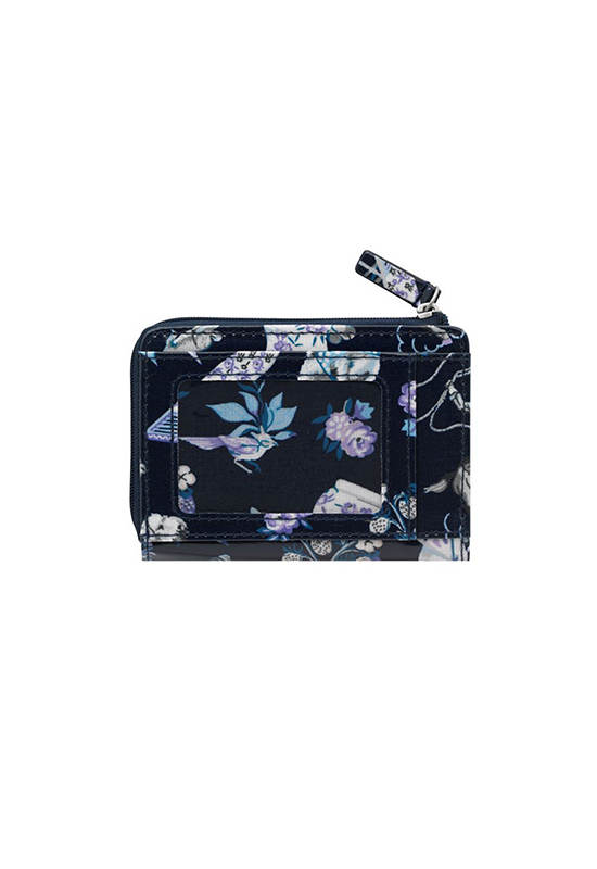 Slim, fold-out design Six card slots Notes section Zipped coin section Clear ID slot on reverse Matches back to our bag collection