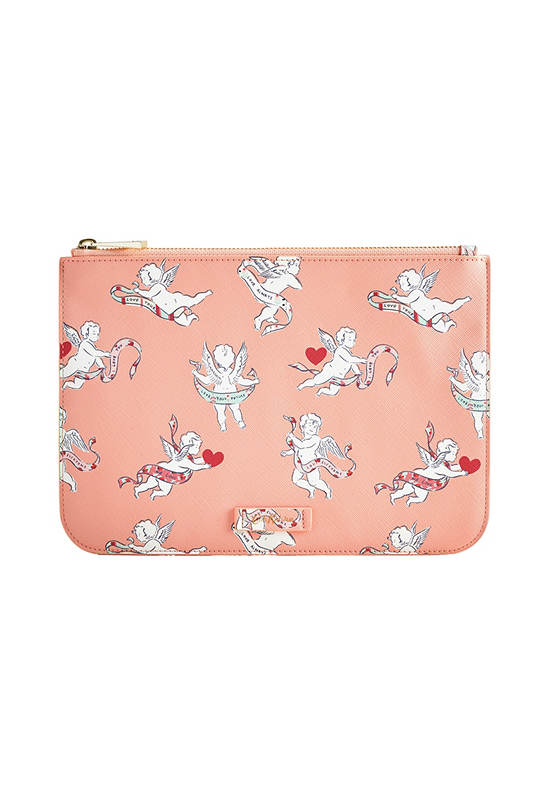 Love is in the air with this Cupid Essentials Pouch from Cath Kidston. Adorned in a hand-illustrated print of Cupid carrying sweet sentiments of love, this practical pouch is made from TPU cotton coated with a gold zip fastening and Cath branding on the front. Match with other pieces in the Cupid range for a loving collection.