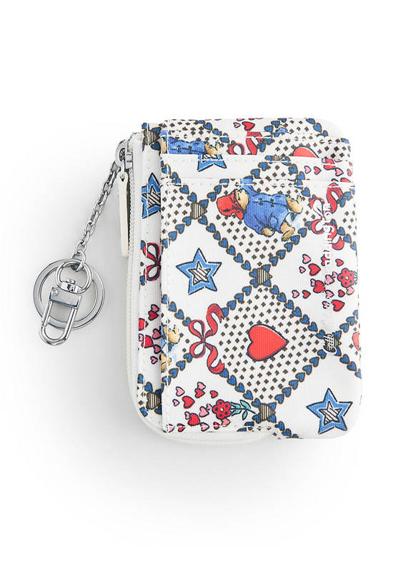 Hearts, stars and flowers perfectly partner with Paddington™ as symbols of love and joy on this Cath Kidston Card and Coin Purse. A handy addition to your daily wardrobe, this compact purse is crafted from matte coated cotton with a handy corner zip closure to make it easy to reach the internal card slots. Mix and match with the rest of the range for a bold and joyous collection.
