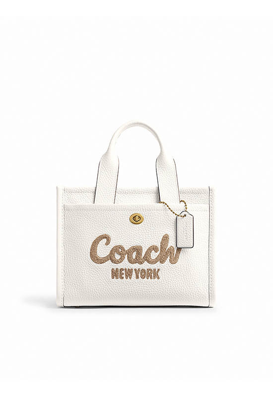 Carry as much (or as little) as you like with our lightweight Cargo tote. Detailed with our cursive Coach script embroidery and iconic turnlock closure, this compact 26 is crafted of embossed pebble leather. It has an open interior with room for an iPad, two outside pockets for easy organization and a removable recycled polyester webbing strap for shoulder or crossbody wear.