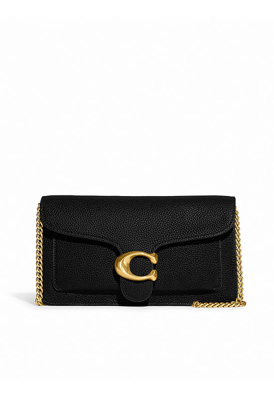 A modern take on an archival 1970s Coach design, our structured Tabby clutch is crafted of polished pebble leather. Finished with our Signature hardware, this organized, three compartment design has a secure interior zippered compartment and an exterior slip pocket for easy access to essentials. The versatile bag can be carried as a clutch or worn crossbody with the elegant chain strap, making it the perfect choice for both dressed up and casual looks.