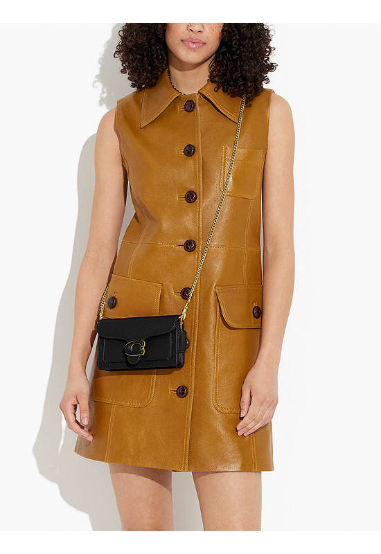 A modern take on an archival 1970s Coach design, our structured Tabby wristlet is crafted of polished pebble leather. Finished with our Signature hardware, it’s perfectly sized for cards, cash and a phone with an exterior slip pocket for easy access to essentials. The versatile style can be carried as a wristlet or a clutch and worn crossbody with the elegant chain strap, making it the perfect choice for both dressed up and casual looks.