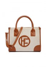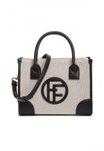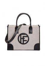 FOF This is a stylish tote bag made from a canvas material. It features a minimalist design with a circular logo in the center, likely the brand’s initials. The bag has two sturdy handles for comfortable carrying.